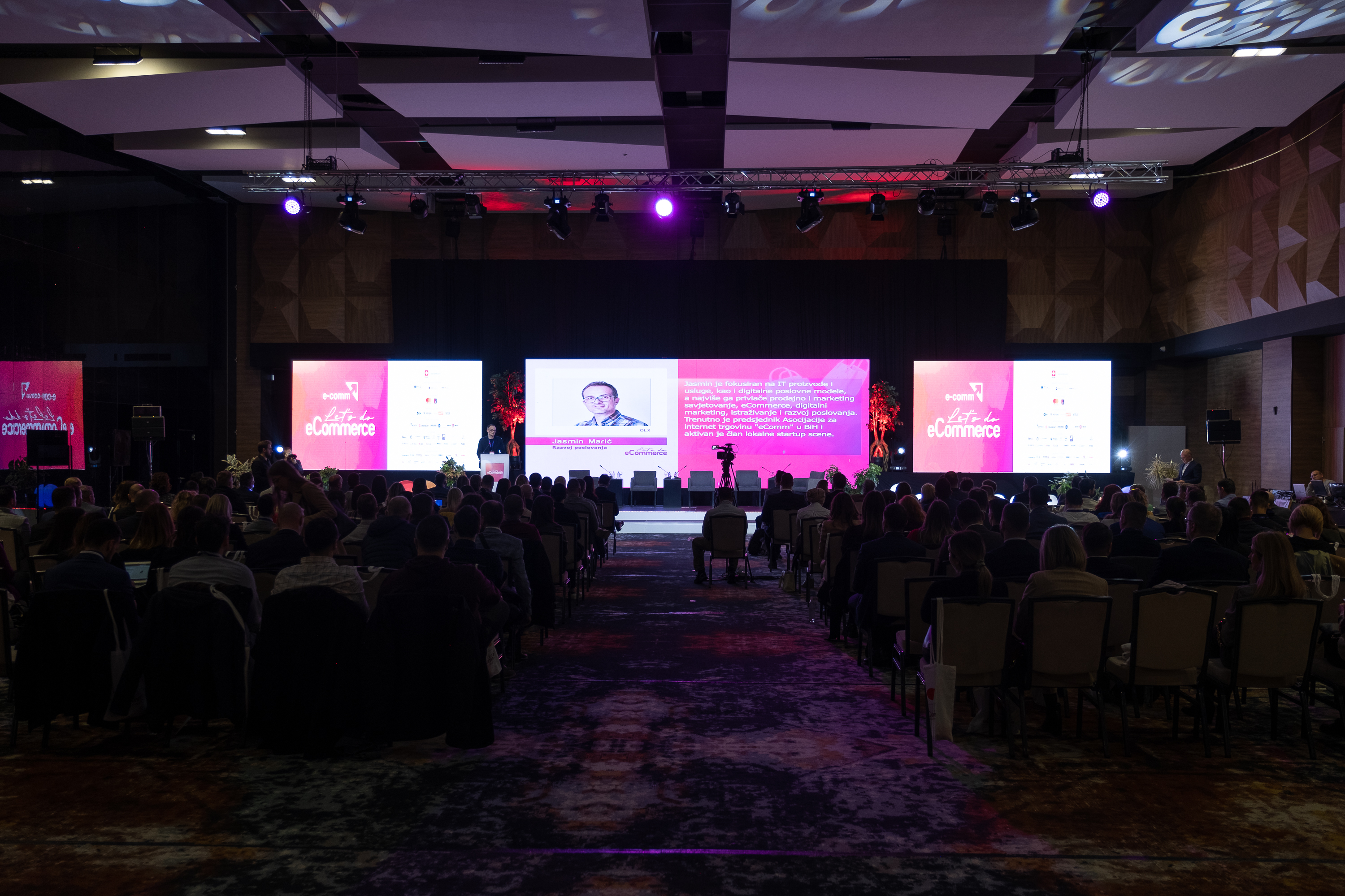 Kada zaronite u svijet „Let’s do eCommerce”, dočekuje vas prostrani auditorijum ispunjen ljudima različitih profila, ali s istom strašću prema e-trgovini. Dok se u pozadini čuje tiho brujanje konverzacija, na velikim ekranima prikazuju se najnovije tehnološke inovacije, trendovi u online marketingu, kao i najuspješnije strategije prodaje.